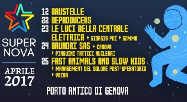 Dal 22 al 25 aprile a Genova una carrellata di grandi nomi della scena musicale italiana. Da Brunori ai Baustelle, Deproducers, Le Luci della Centrale Elettrica e tante altre sorprese...