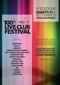 E' iniziato il conto alla rovescia per assistere alla IV edizione di KeepOn 100% LIVE CLUB Festival che si terrà al Viper di Firenze sabato 21 Settembre....
